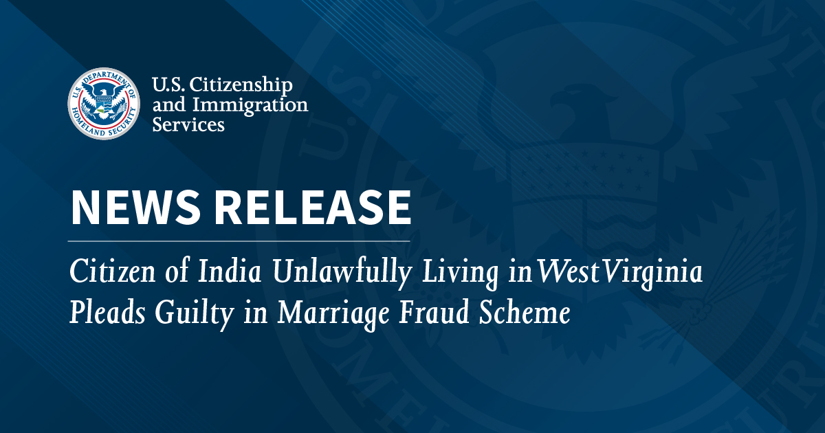 BECKLEY, W.Va. Les services américains de citoyenneté et d’immigration ont apporté une aide précieuse à l’enquête qui a conduit un citoyen indien à plaider coupable dans une affaire de mariage frauduleux.
