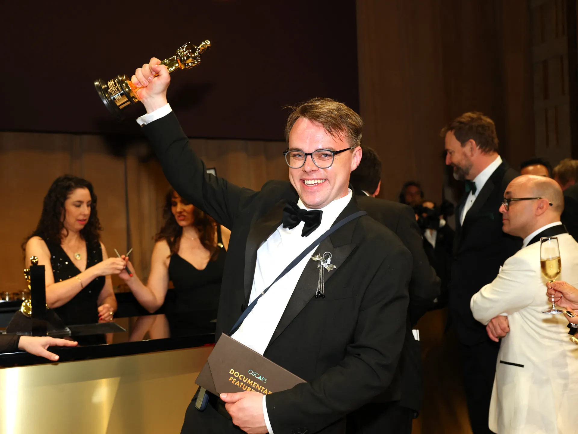 Dans son discours de remerciement lors de la cérémonie des Oscars le 15 mars 2026, Talankin a déclaré : « Depuis quatre ans, nous regardons le ciel à la recherche d’étoiles filantes pour faire un vœu très important, mais il y a des pays où au lieu d’étoiles filantes, ils ont des bombes qui tirent et des drones qui tirent ».