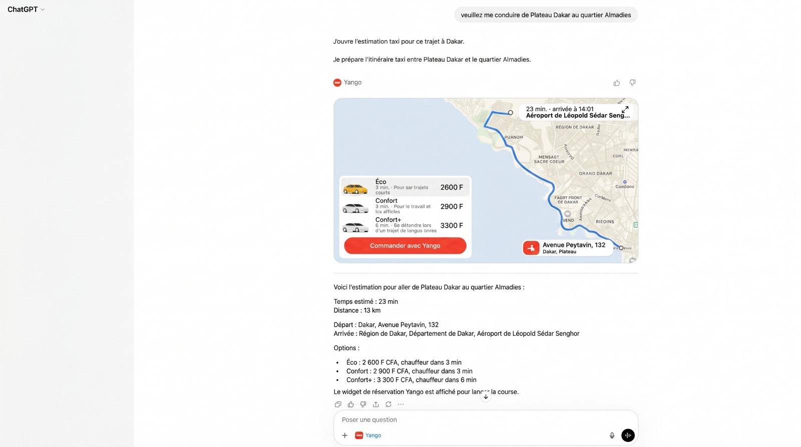 Dans une capitale comme Dakar, où la planification des déplacements est un enjeu quotidien entre les heures de pointe sur la VDN et les rendez-vous professionnels au Plateau, Yango simplifie l’expérience utilisateur. En intégrant ses services à ChatGPT, la plateforme permet de passer de la conversation à l’action sans changer d’application.